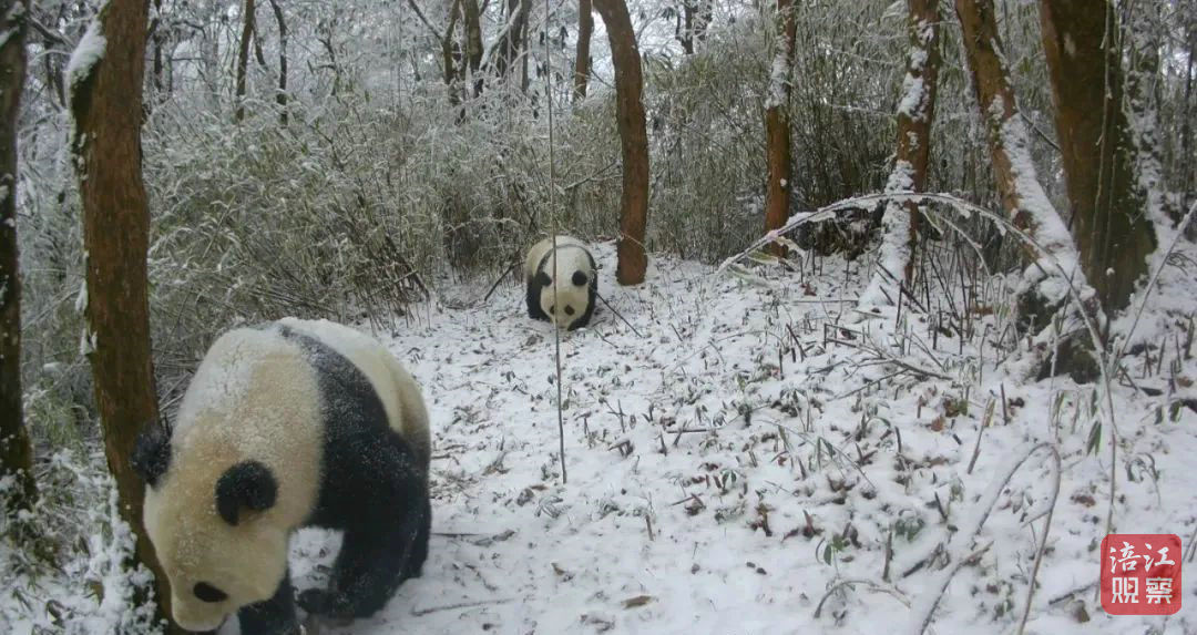 ↑野生大熊貓雪地結伴圖。圖源:大熊貓國家公園北川片區(qū)