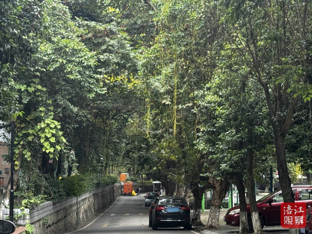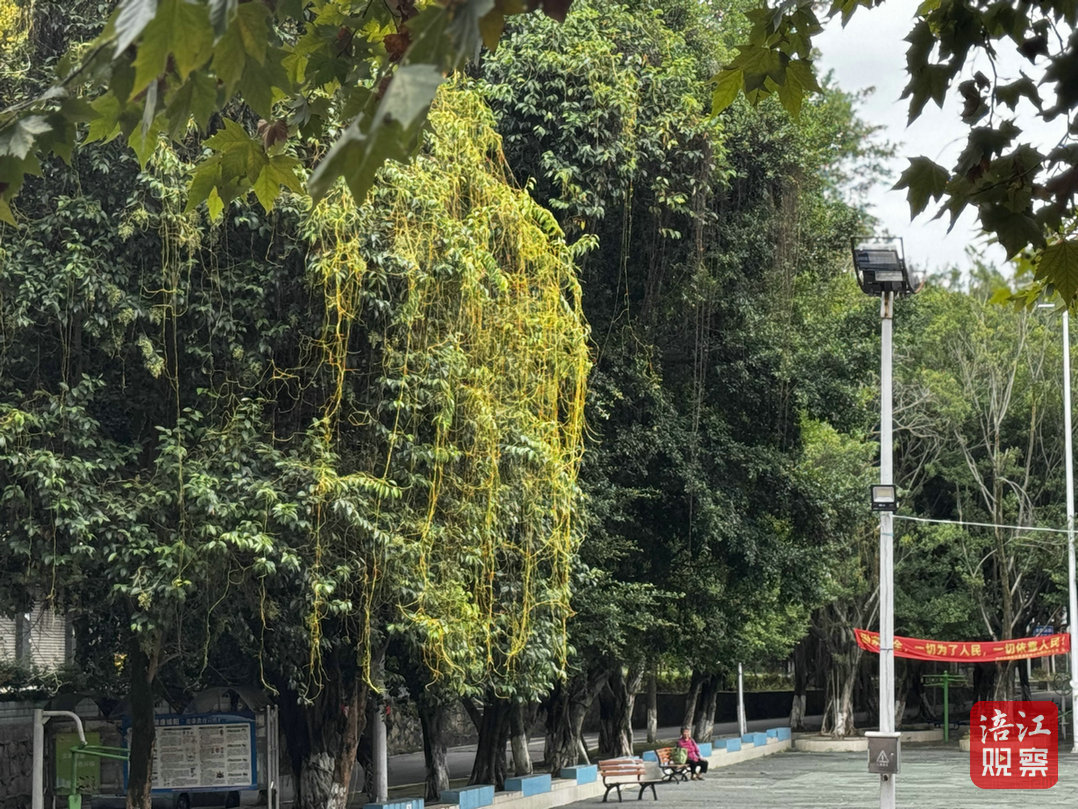記者進(jìn)一步走訪發(fā)現(xiàn),在城區(qū)綿山路、會(huì)仙路、劍門路西段等多條道路的行道樹上,均出現(xiàn)了類似的 “黃絲纏繞”現(xiàn)象。