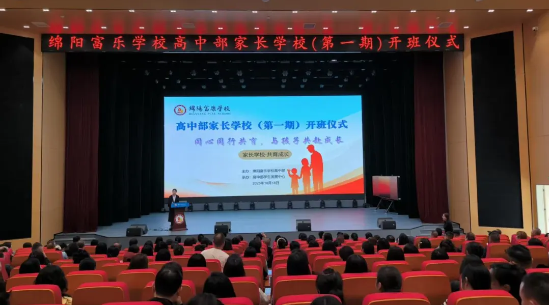 為了構(gòu)建家校溝通的橋梁,凝聚家校教育的合力,10月18日下午,綿陽富樂學(xué)校高中部開展了以“同心同行共育,并肩共赴前程”為主題的2025年秋季學(xué)期第一期家長學(xué)校課程活動。高一、高二年級300多名家長代表齊聚高中部演藝中心,共話育人藍(lán)圖??傂8毙iL高中部校長本國良、高中部學(xué)生發(fā)展中心主任劉元超、高中部后勤服務(wù)中心副主任范恒銳和高中部行政中心主管鄧曉娟參加活動。