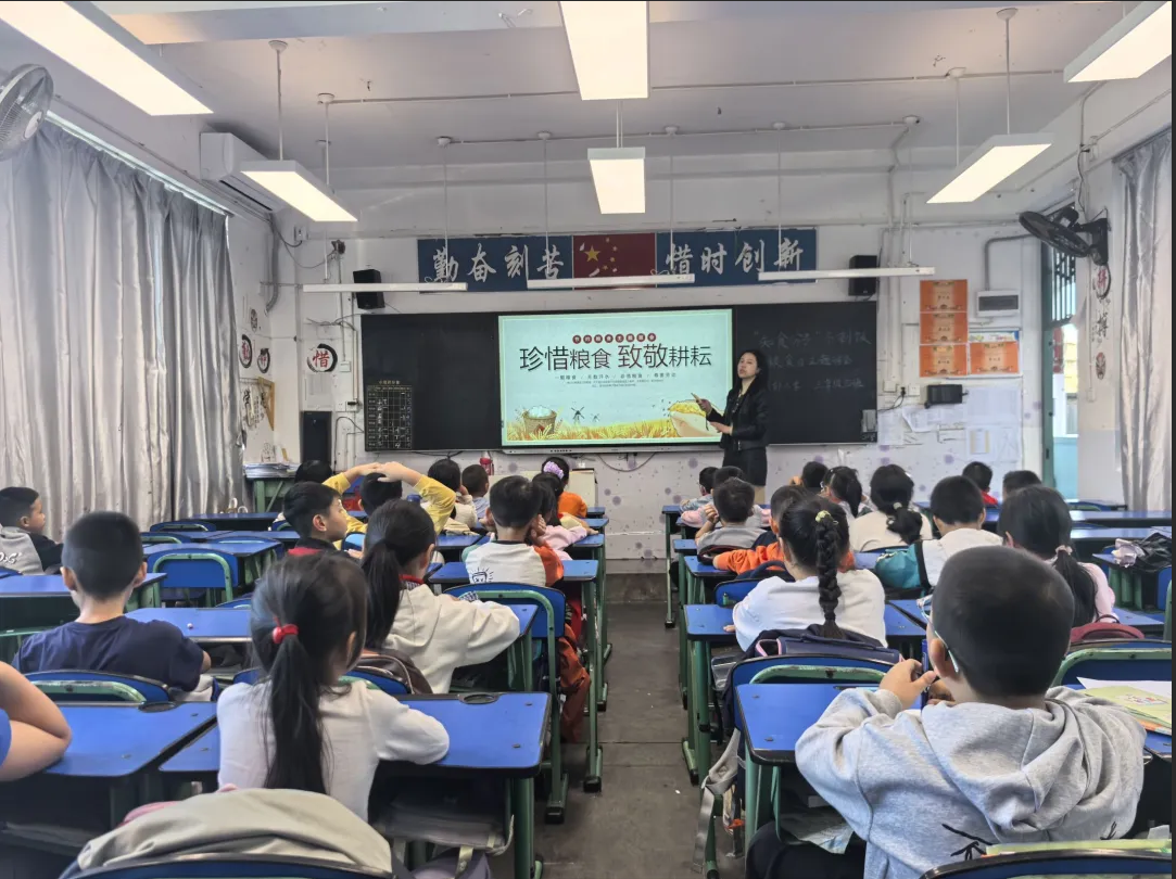 隨后,各班級開展了“節(jié)約糧食,從我做起”主題班會,通過視頻、圖片、數(shù)據(jù)等形式,讓學生真切感受到糧食的來之不易。之外,該校校園廣播站也推出了“糧食安全知多少”專題節(jié)目,普及糧食知識,傳播節(jié)約理念。