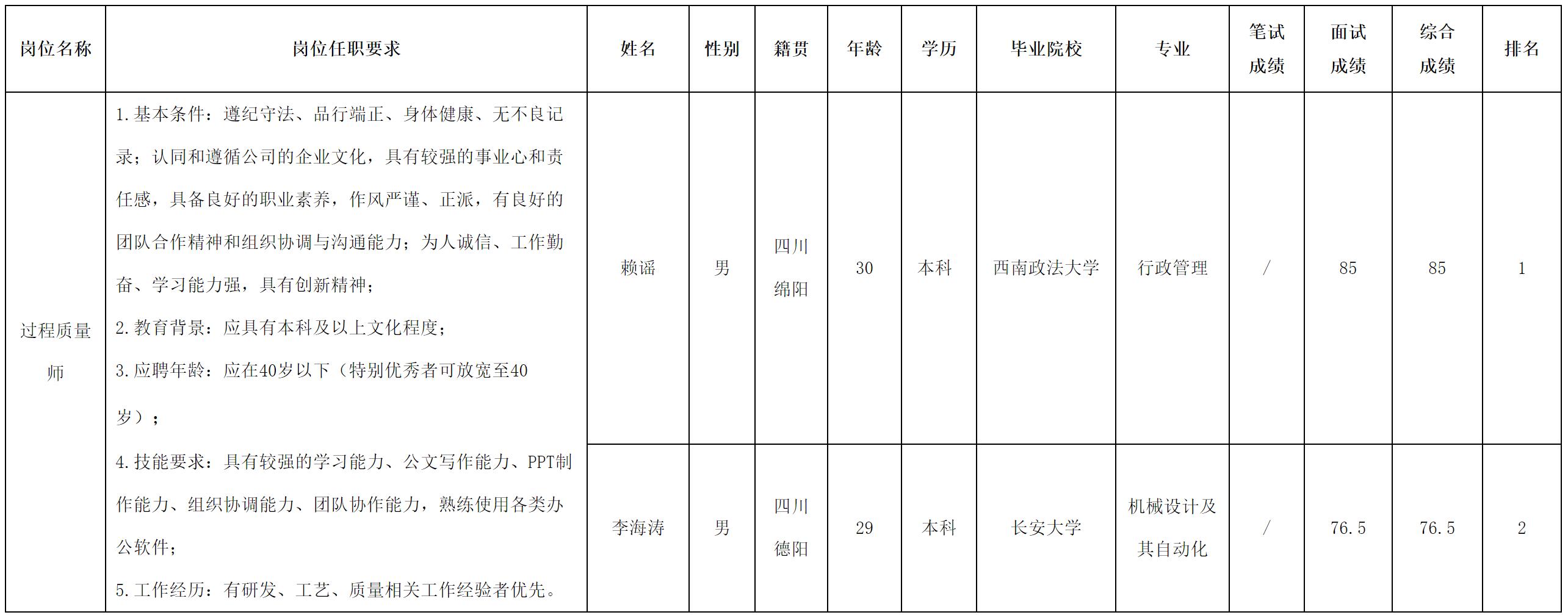 四川長虹空調(diào)有限公司關(guān)于招聘過程質(zhì)量師崗位人員測試成績的公示
