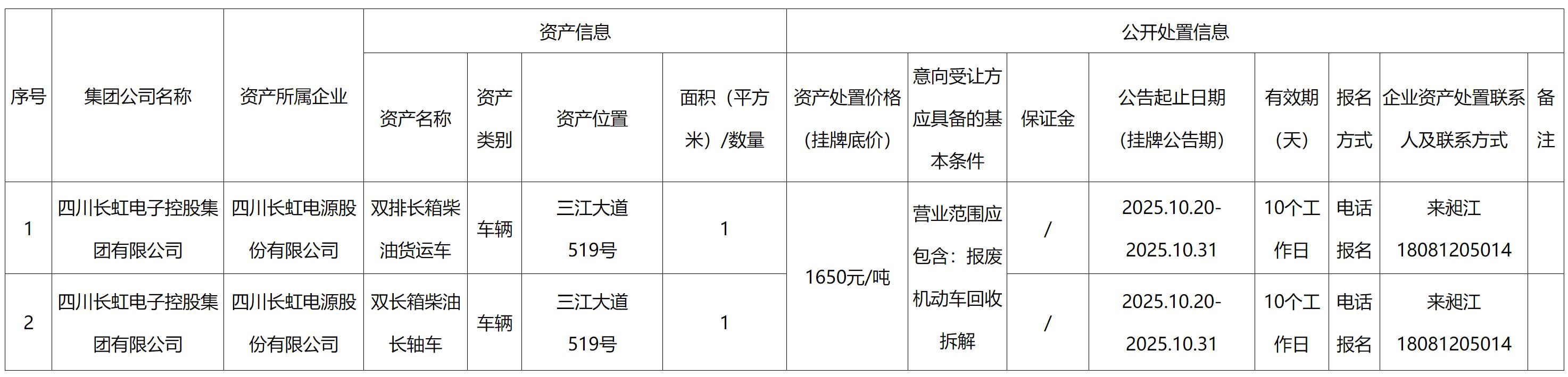 四川長虹電源股份有限公司報廢資產(chǎn)處置公告