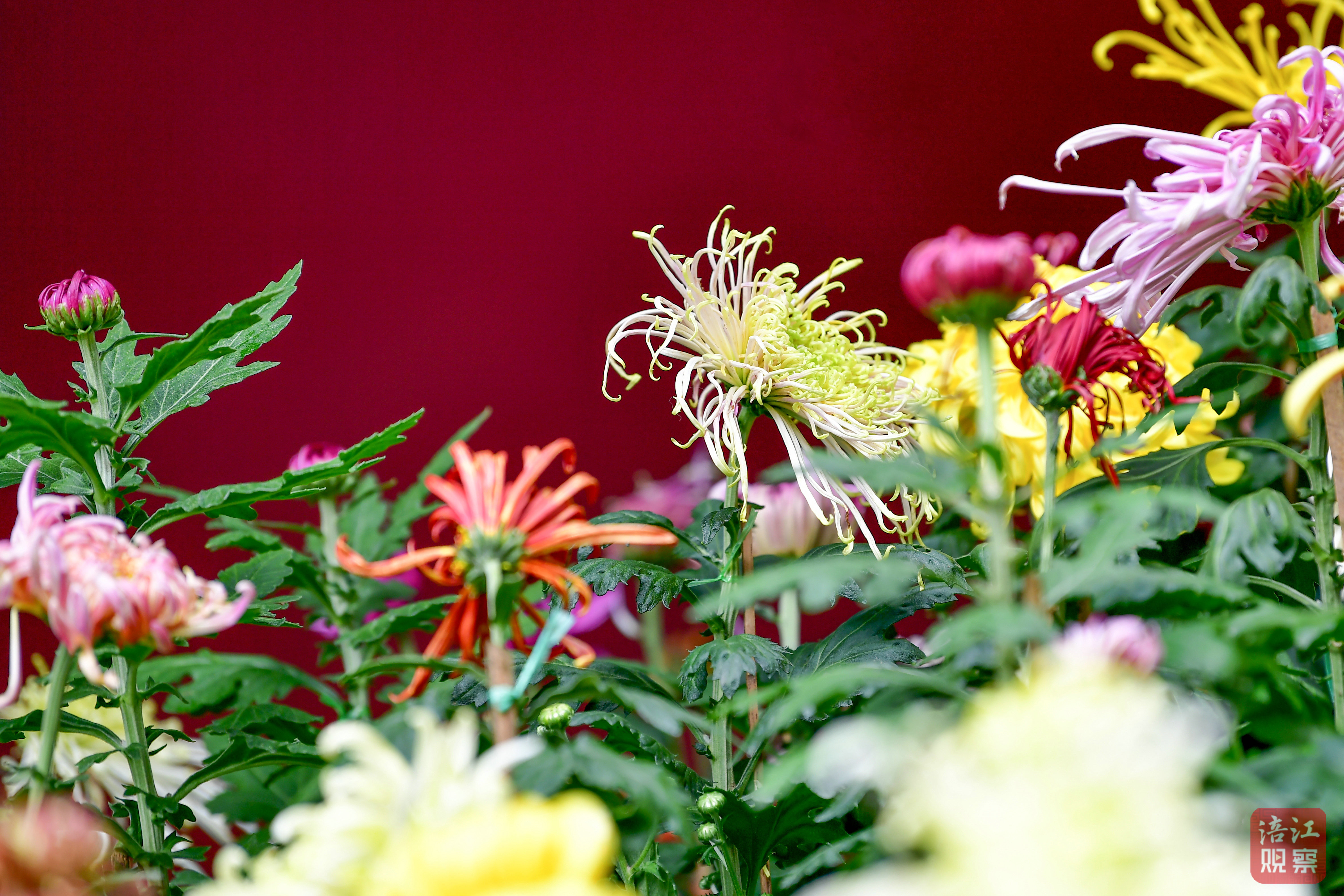 “安逸四川樂游綿陽”“嫘祖圣地”等造型各異、美輪美奐的菊藝展示,令人陶醉。各色花瓣在柔和的陽光下愈發(fā)絢麗多彩,散發(fā)出沁人心脾的菊香,讓觀展的市民游客流連忘返。