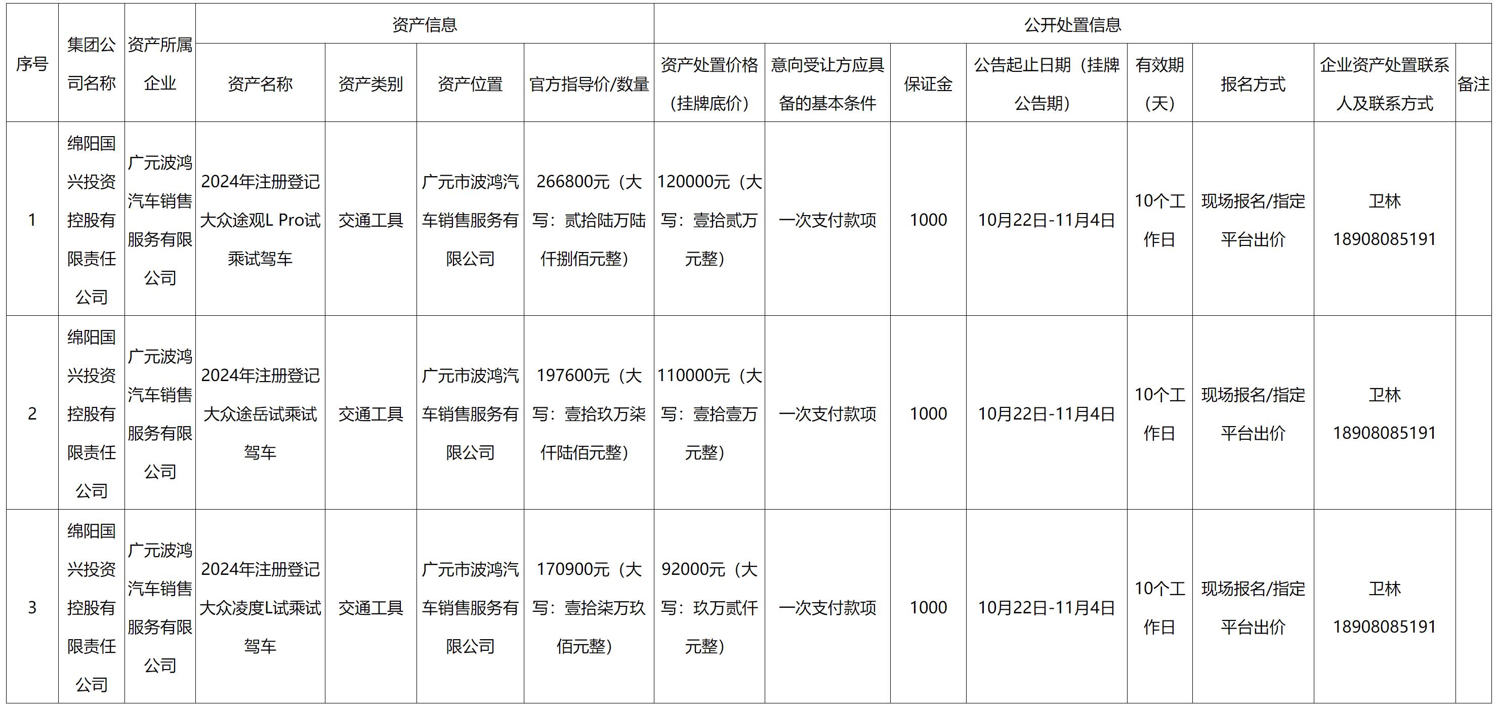 綿陽國興投資控股有限責(zé)任公司資產(chǎn)處置公告