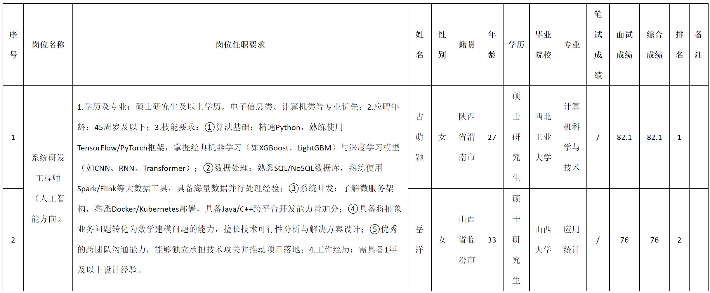 根據(jù)四川九洲電器集團有限責(zé)任公司發(fā)布的招聘公告及招聘相關(guān)規(guī)定,現(xiàn)將測試成績予以公示。