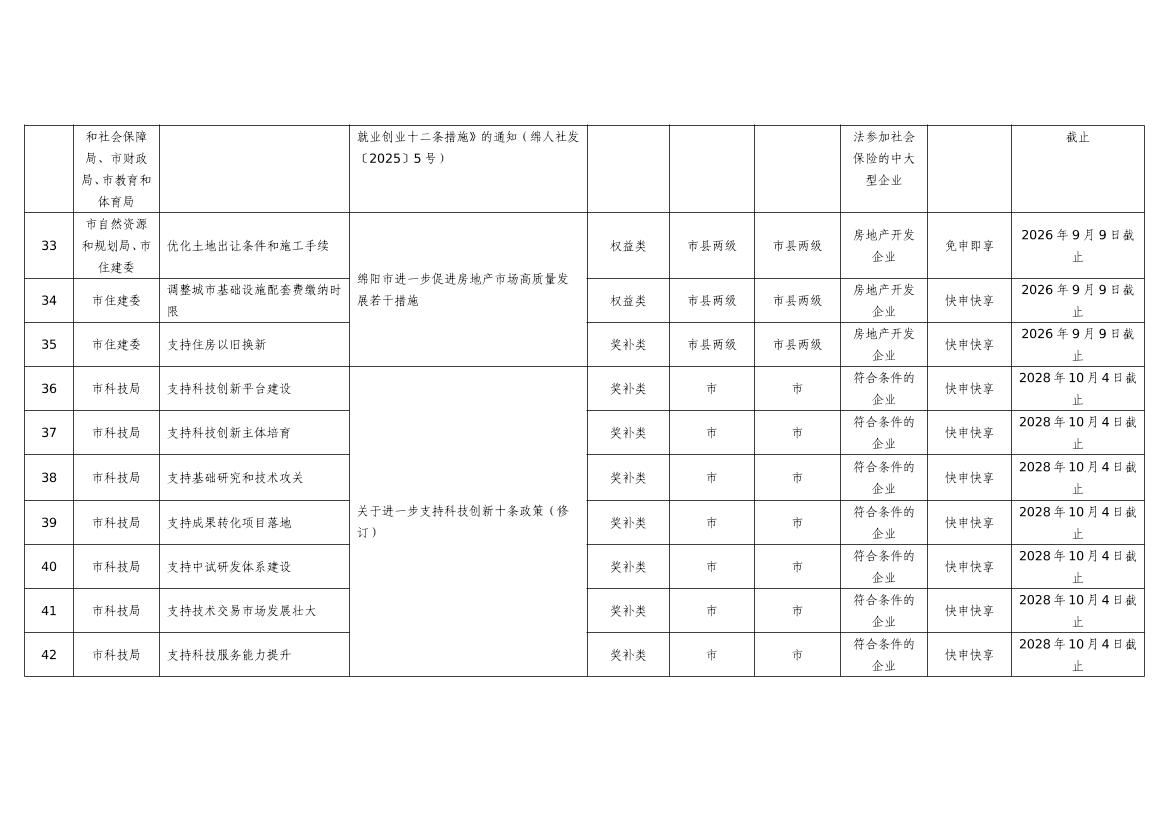 2025年綿陽市級(jí)惠企政策事項(xiàng)清單(第二批)