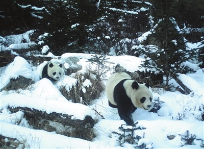 大熊貓國家公園北川片區(qū),紅外相機(jī)拍攝到大熊貓母子。