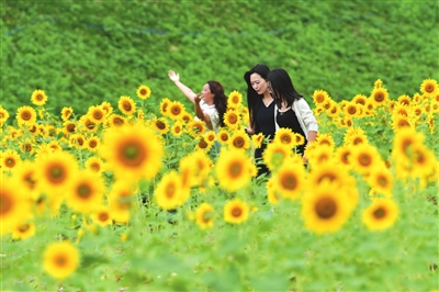 金秋時節(jié),游仙區(qū)石馬鎮(zhèn)紅巖水電站旁的連片向日葵生機(jī)盎然,吸引眾多游客前來觀賞打卡。