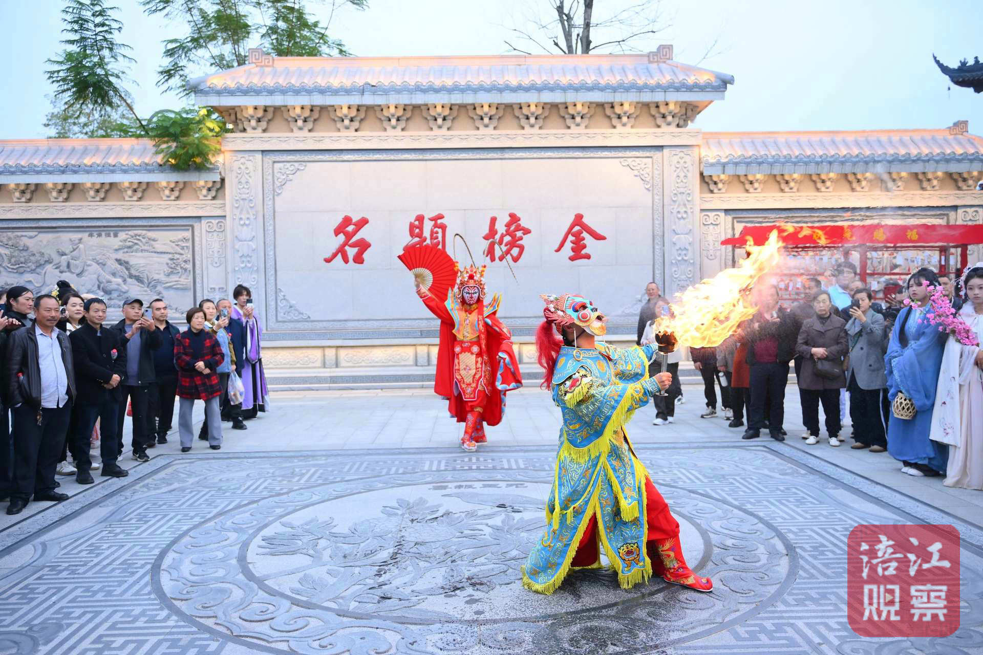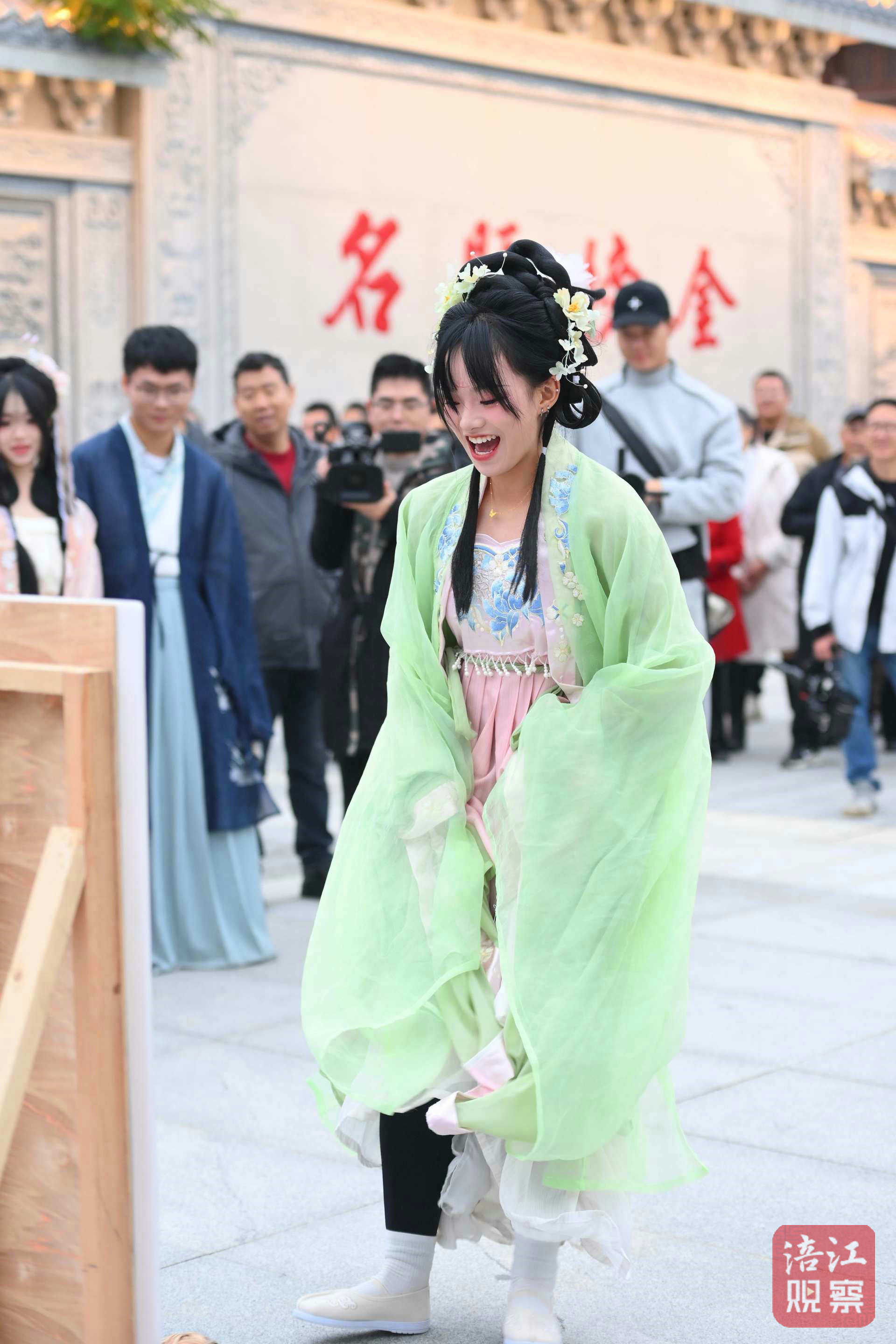 在“當(dāng)一天李白”對詩挑戰(zhàn)文豪、對詩贏好禮環(huán)節(jié),現(xiàn)場游客和NPC扮演的李白進行詩詞對答互動,贏取現(xiàn)場非遺好禮。隨后的變臉吐火環(huán)節(jié),隨著變臉和吐火的傳統(tǒng)技藝登場,現(xiàn)場觀眾爆發(fā)熱烈掌聲。
