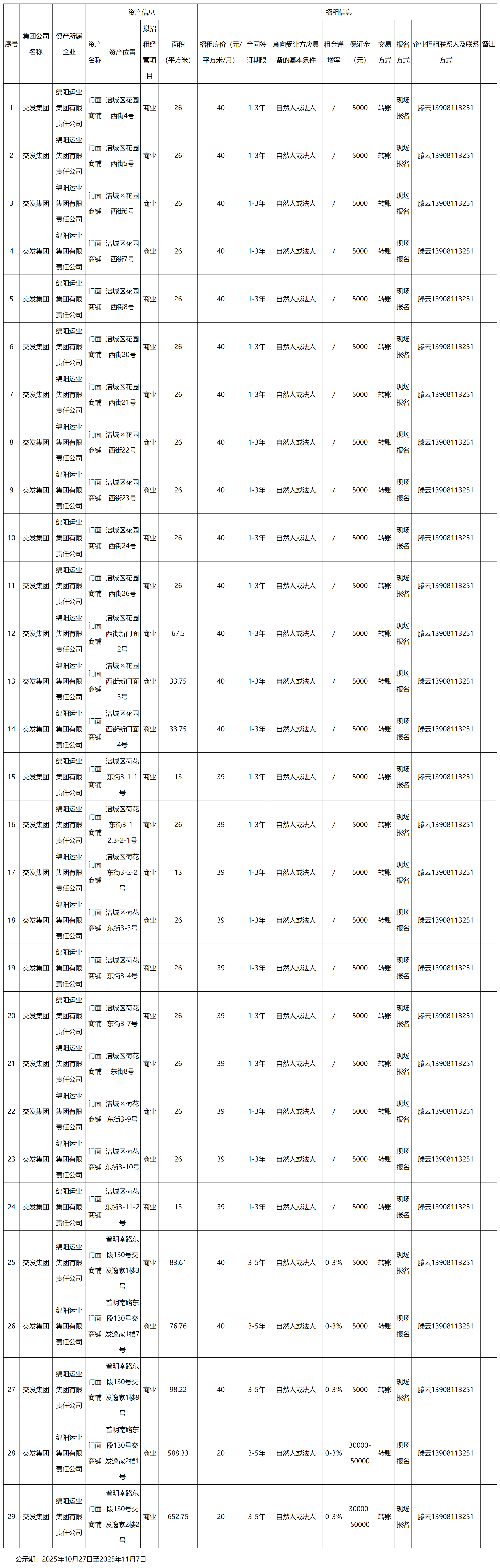 綿陽運(yùn)業(yè)集團(tuán)有限責(zé)任公司資產(chǎn)出租公告