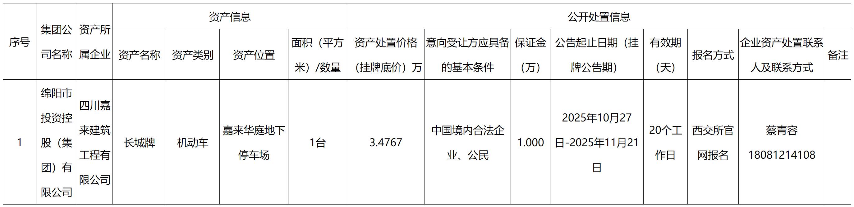四川嘉來建筑工程有限公司資產(chǎn)處置公告