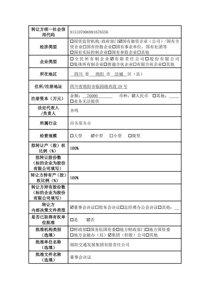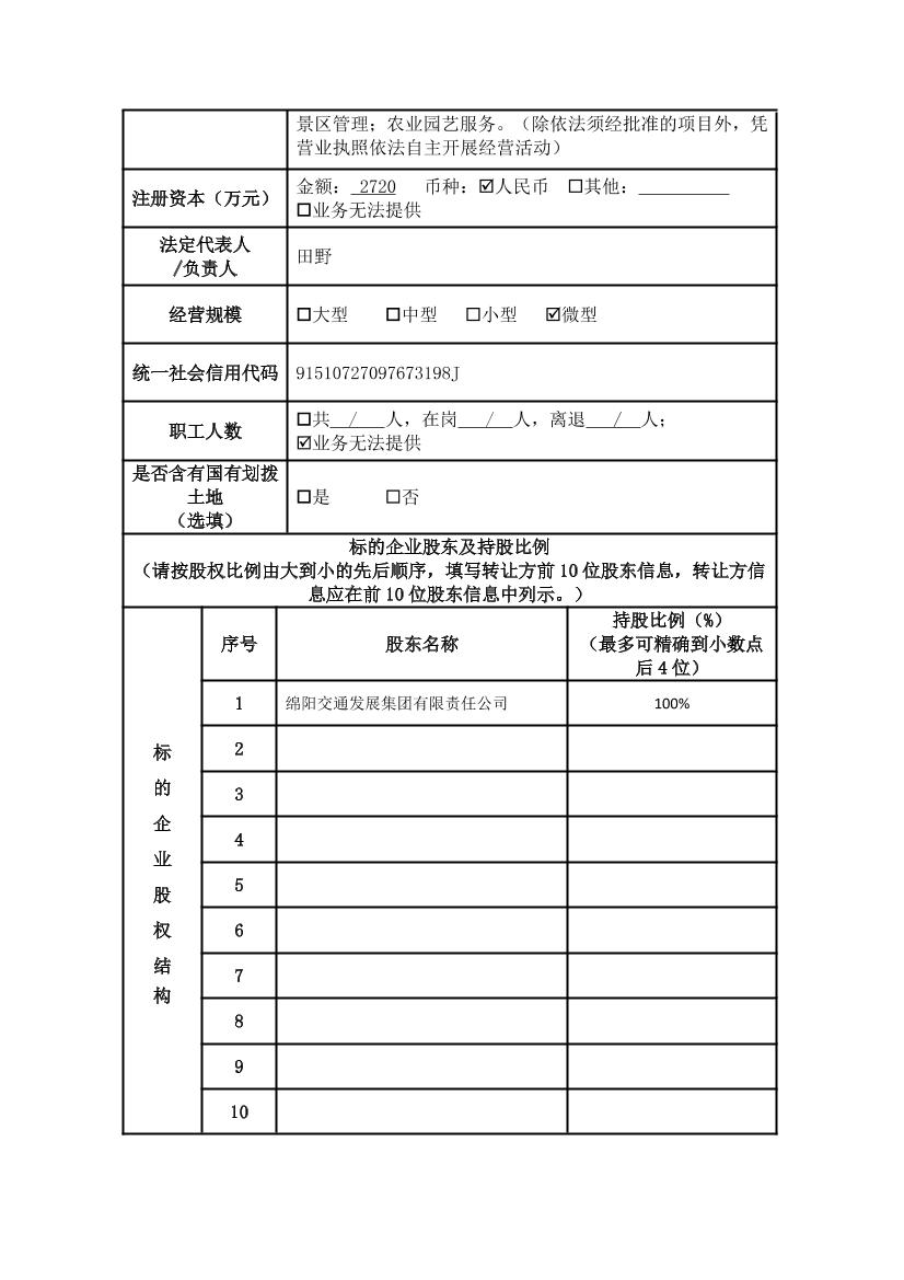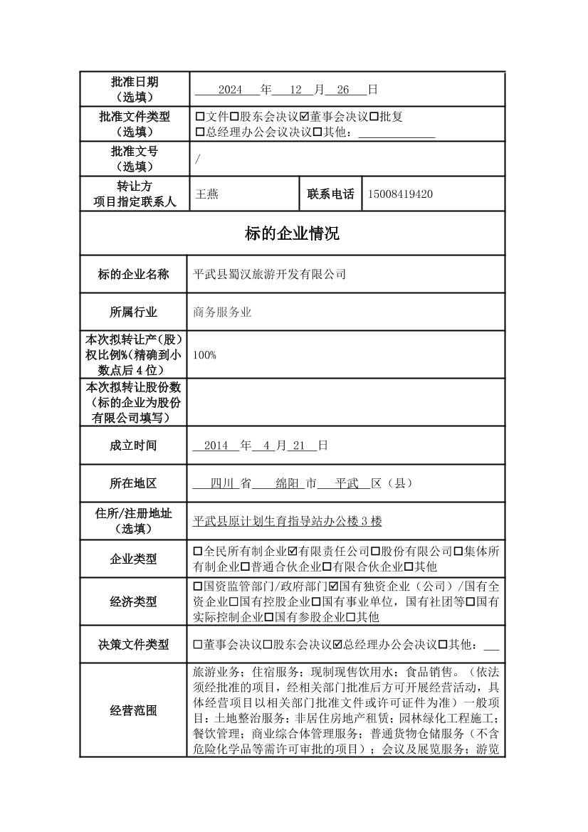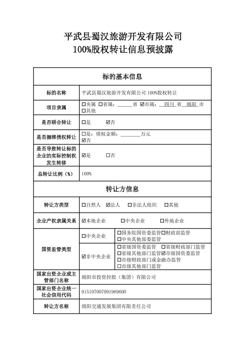 平武縣蜀漢旅游開(kāi)發(fā)有限公司100%股權(quán)轉(zhuǎn)讓信息預(yù)披露