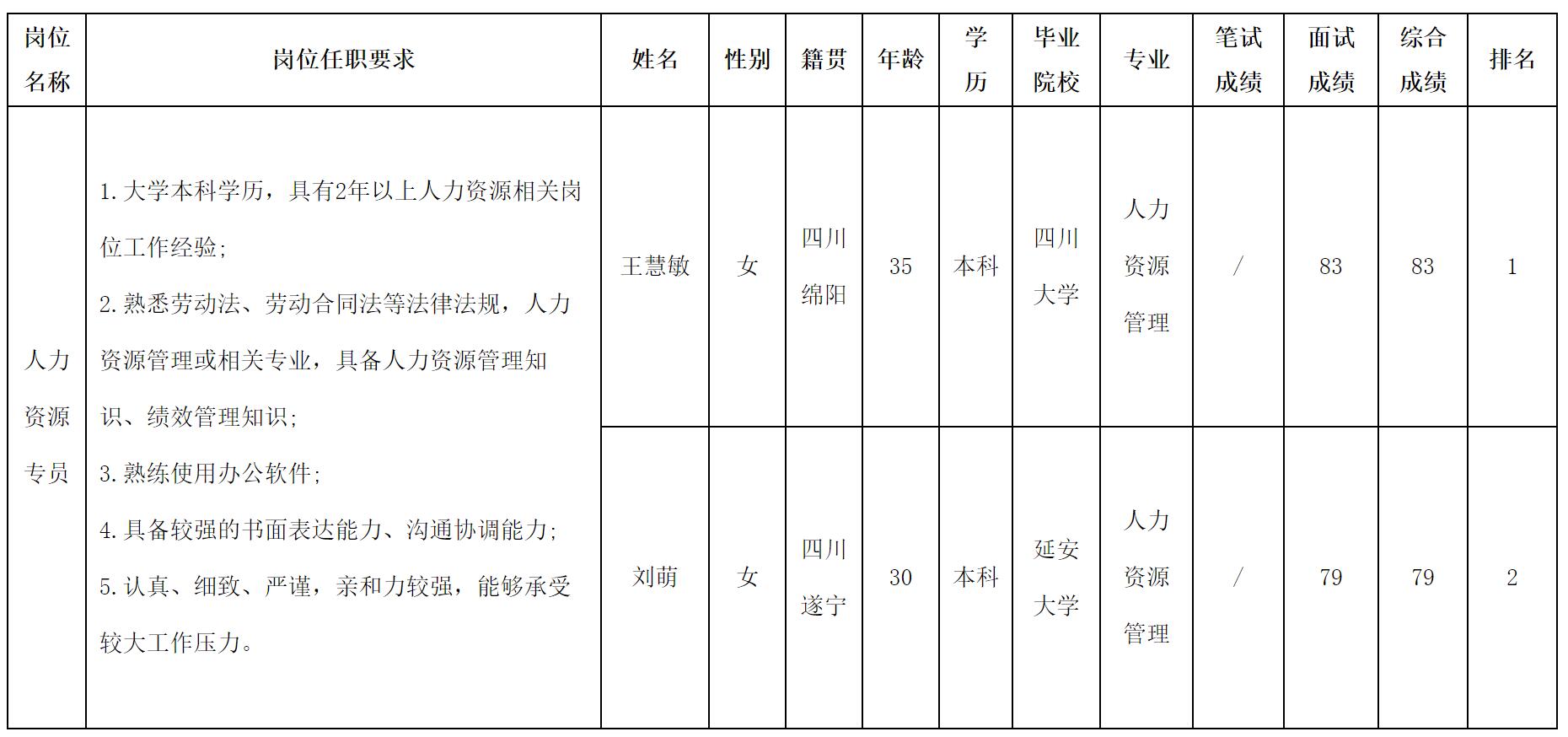 根據(jù)四川華豐科技股份有限公司發(fā)布的招聘公告及招聘相關(guān)規(guī)定,現(xiàn)將測(cè)試成績(jī)予以公示。