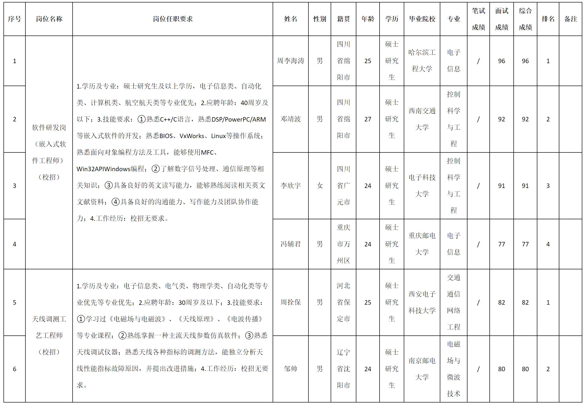 根據(jù)四川九洲電器集團有限責任公司發(fā)布的招聘公告及招聘相關(guān)規(guī)定,現(xiàn)將測試成績予以公示。