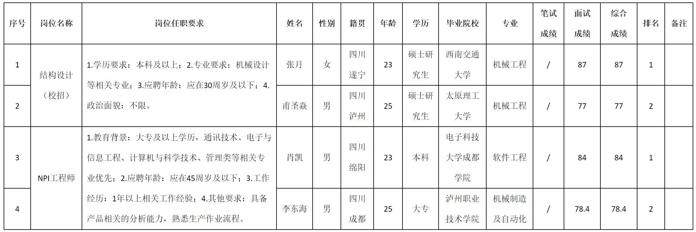 根據四川九州電子科技股份有限公司發(fā)布的招聘公告及招聘相關規(guī)定,現(xiàn)將測試成績予以公示。
