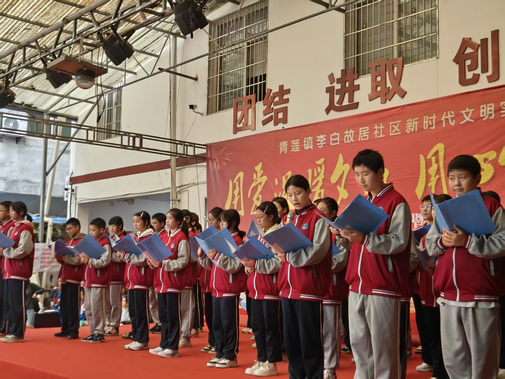 隨后,青蓮初中的學(xué)子們?yōu)樵趫龅臓敔斈棠虃儷I(xiàn)上了精心準(zhǔn)備的文藝節(jié)目。首先登場的是經(jīng)典誦讀《我愛你,中國》。同學(xué)們精神飽滿,聲情并茂,用鏗鏘有力而又飽含深情的語調(diào),朗誦出對祖國壯麗山河和悠久歷史的無限熱愛與贊美。字字句句,激蕩人心,不僅展現(xiàn)了青蓮學(xué)子良好的精神風(fēng)貌,更將愛國主義的種子播撒在心田,引發(fā)了在場所有人的強烈共鳴,現(xiàn)場掌聲經(jīng)久不息。