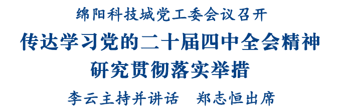 11月2日,綿陽(yáng)科技城黨工委會(huì)議召開(kāi),傳達(dá)學(xué)習(xí)黨的二十屆四中全會(huì)精神,以及中央和省市有關(guān)會(huì)議精神,研究科技城貫徹落實(shí)舉措。市委副書(shū)記、市長(zhǎng)、科技城黨工委書(shū)記李云主持會(huì)議并講話。