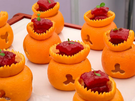 傳承九百余年的東坡肉,在24年廚齡的選手楊建手中化身成“橙香方肉”。小火慢燉間,橙香、肉香與酒香四溢,入口后咸甜鮮香層層綻放,贏得評委連連稱贊。