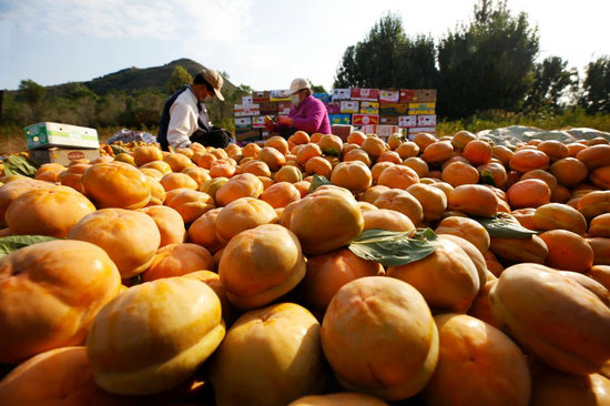 在保定市滿城區(qū)神星鎮(zhèn)果品交易市場,磨盤柿堆積如山。新華社記者 鄒尚伯 攝