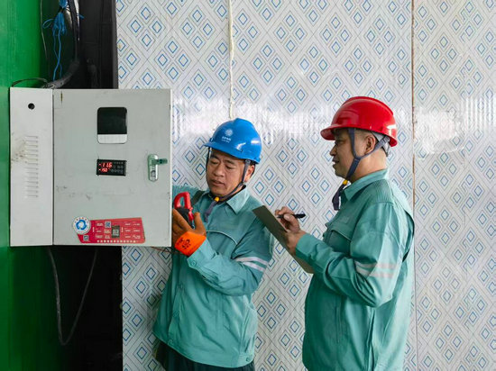 供電公司工作人員正在檢查柿子加工企業(yè)的冷庫用電設(shè)備。新華社發(fā)(高航政 攝)