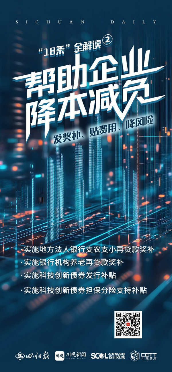 近日,四川出臺(tái)鞏固拓展經(jīng)濟(jì)回升向好勢(shì)頭新“18條”,在“幫助企業(yè)降本減負(fù)”方面提出4條高“含金量”舉措:實(shí)施地方法人銀行支農(nóng)支小再貸款獎(jiǎng)補(bǔ)、銀行機(jī)構(gòu)養(yǎng)老再貸款獎(jiǎng)補(bǔ)、科技創(chuàng)新債券發(fā)行補(bǔ)貼、科技創(chuàng)新債券擔(dān)保分險(xiǎn)支持補(bǔ)貼。