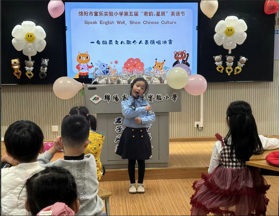 綿陽新聞網(wǎng)訊 11月3日下午,綿陽市富樂實驗小學(xué)開展了以“Speak English well, Show Chinese culture”為主題的一年級英語兒歌表演比賽活動,一群英語“小萌新”化身舞臺上最亮的星,用稚嫩歌聲圈粉全場。