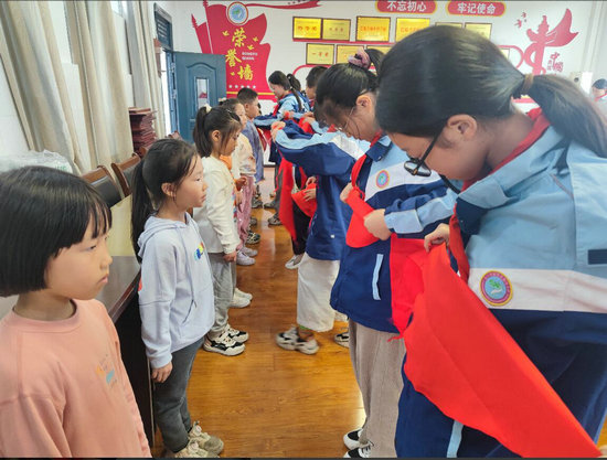 活動現(xiàn)場,老隊員們懷揣著對少先隊精神的崇敬,小心翼翼且無比莊重地為新隊員佩戴紅領(lǐng)巾。當(dāng)那一抹鮮艷的紅色如火焰般在新隊員胸前飄揚時,新隊員們的眼眸中閃爍著自豪的光芒,稚嫩的臉龐上滿是難以掩飾的喜悅。這一時刻,不僅是紅領(lǐng)巾的交接傳遞,更是愛黨愛國的赤誠精神與少先隊光榮傳統(tǒng)跨越時光的賡續(xù)傳承。
