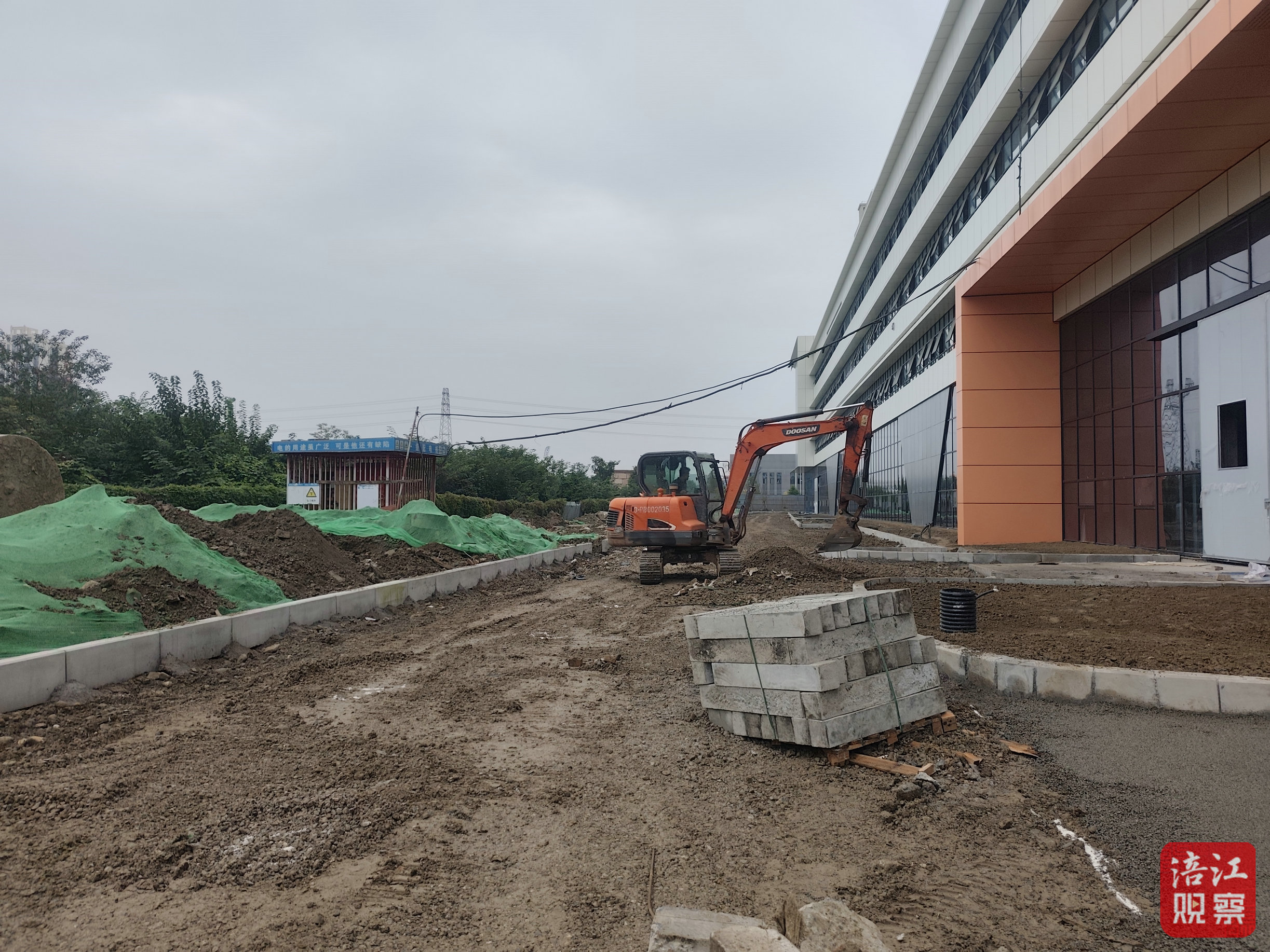 走進園區(qū),只見透水混凝土像淺灰色的綢帶,被壓路機熨得服服帖帖,剛鋪好的路面還帶著濕潤的光澤;挖掘機和裝載機默契配合,“鏟斗一揚一落”間,把路基整理得平平整整;灑水車給新澆筑的地面“喂水”保養(yǎng),水霧里還飄著水泥的清新味兒;工人們彎腰對準(zhǔn)位置,“哐當(dāng)”一聲就把污水井蓋穩(wěn)穩(wěn)安妥……機器的轟鳴、工具的碰撞、師傅們的吆喝聲交織在一起,努力做著“馬上完工”階段的最后“沖刺”。