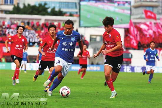 進(jìn)入補(bǔ)時(shí)階段,比賽激烈程度再度升級(jí):德陽(yáng)隊(duì)多次發(fā)力沖擊綿陽(yáng)隊(duì)禁區(qū),均未能突破防線;綿陽(yáng)隊(duì)則在鞏固禁區(qū)防守的同時(shí),伺機(jī)發(fā)起反攻。現(xiàn)場(chǎng)球迷吶喊聲此起彼伏,雙方全力沖刺爭(zhēng)奪,最終主裁判吹響終場(chǎng)哨,綿陽(yáng)九洲長(zhǎng)虹隊(duì)與德陽(yáng)重裝隊(duì)1∶1握手言和。