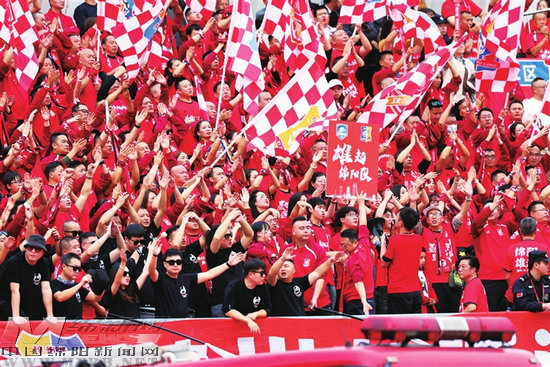 現(xiàn)場(chǎng)球迷吶喊助威。記者 陳冬冬 攝
