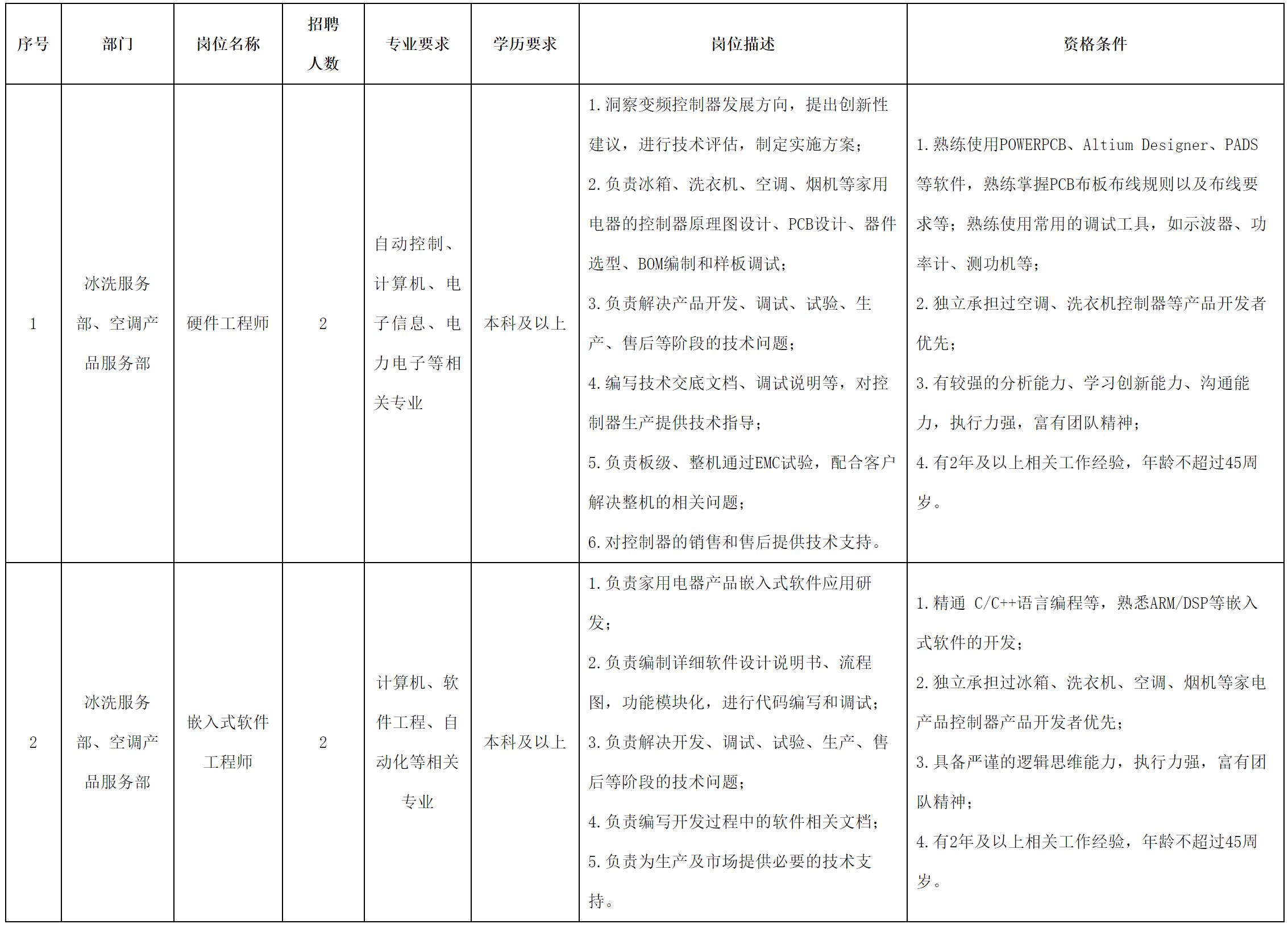 根據(jù)公司發(fā)展規(guī)劃,現(xiàn)面向長(zhǎng)虹集團(tuán)內(nèi)外部誠(chéng)聘以下崗位,具體如下: