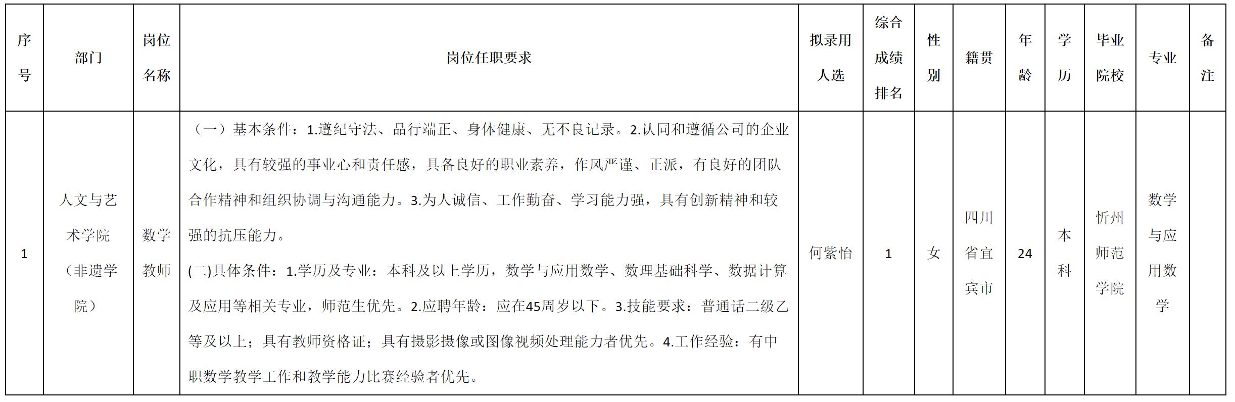 根據(jù)四川九洲教育投資管理有限公司發(fā)布的招聘公告及招聘相關(guān)規(guī)定,經(jīng)測(cè)試、考察、體檢等程序,擬錄用何紫怡同志到四川九洲教育投資管理有限公司工作,現(xiàn)予以公示,具體情況如下: