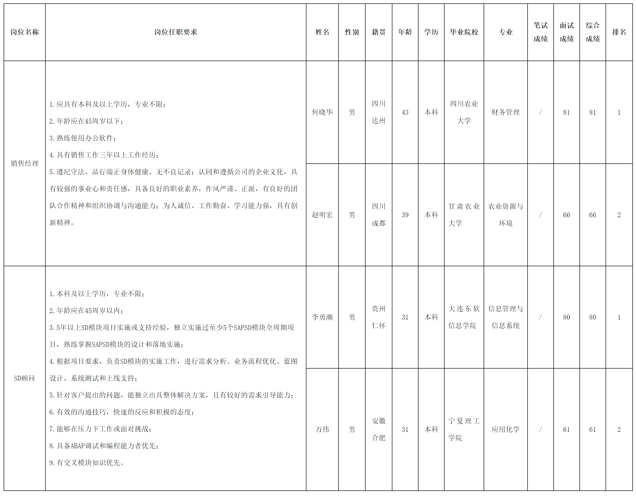 根據(jù)四川虹信軟件股份有限公司發(fā)布的招聘公告及招聘相關(guān)規(guī)定,現(xiàn)將測(cè)試成績(jī)予以公示。