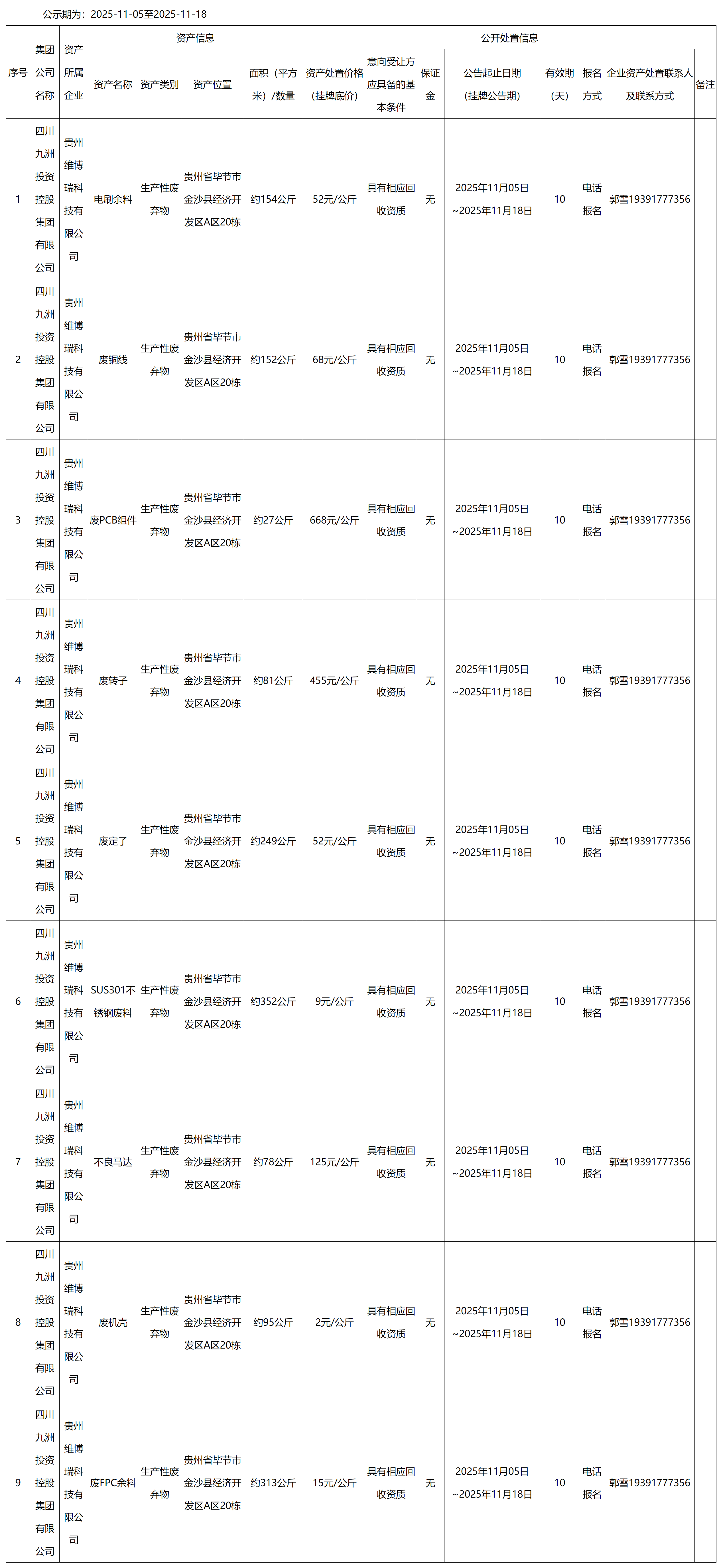 貴州維博瑞科技有限公司生產(chǎn)廢料資產(chǎn)處置公告