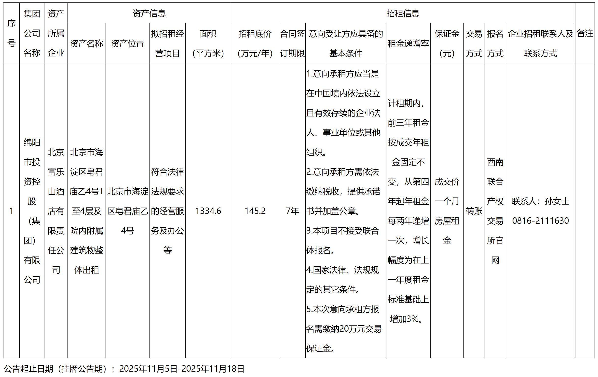 綿陽市康來物業(yè)服務有限公司資產(chǎn)出租公告
