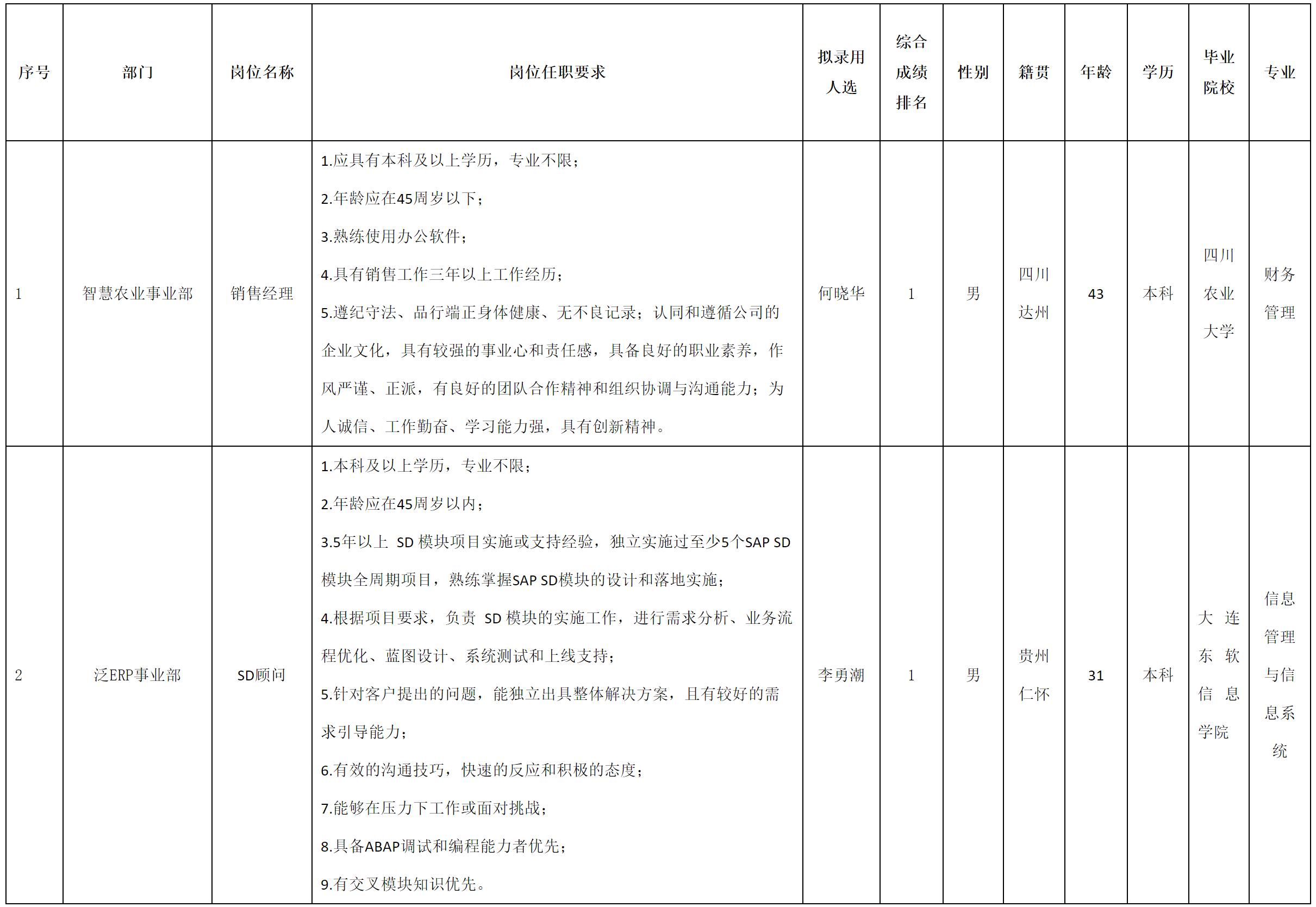 根據(jù)四川虹信軟件股份有限公司發(fā)布的招聘公告及招聘相關規(guī)定,經測試、考察、體檢等程序,擬錄用何曉華、李勇潮同志到四川虹信軟件股份有限公司工作,現(xiàn)予以公示,具體情況如下: