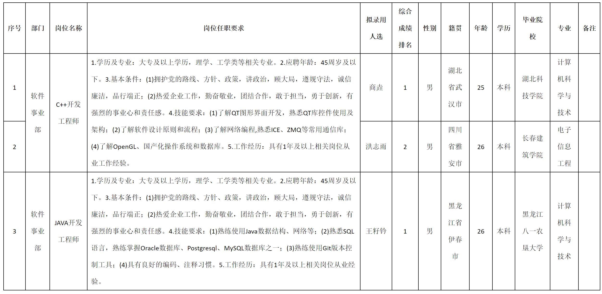 根據(jù)四川九強(qiáng)通信科技有限公司發(fā)布的招聘公告及招聘相關(guān)規(guī)定,經(jīng)測(cè)試、考察、體檢等程序,擬錄用商垚等3名同志到四川九強(qiáng)通信科技有限公司工作,現(xiàn)予以公示,具體情況如下: