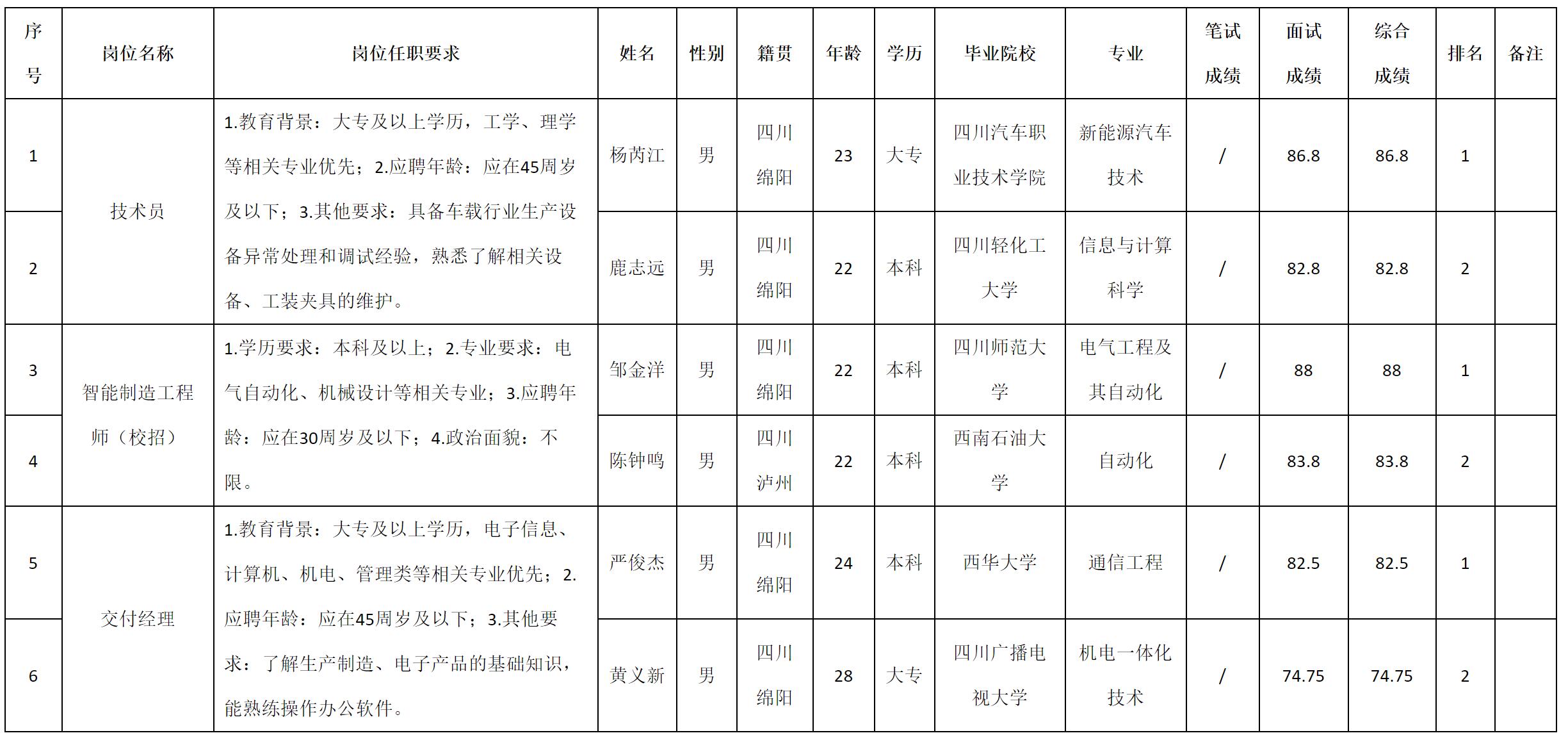 根據(jù)四川九州電子科技股份有限公司發(fā)布的招聘公告及招聘相關(guān)規(guī)定,現(xiàn)將測試成績予以公示。