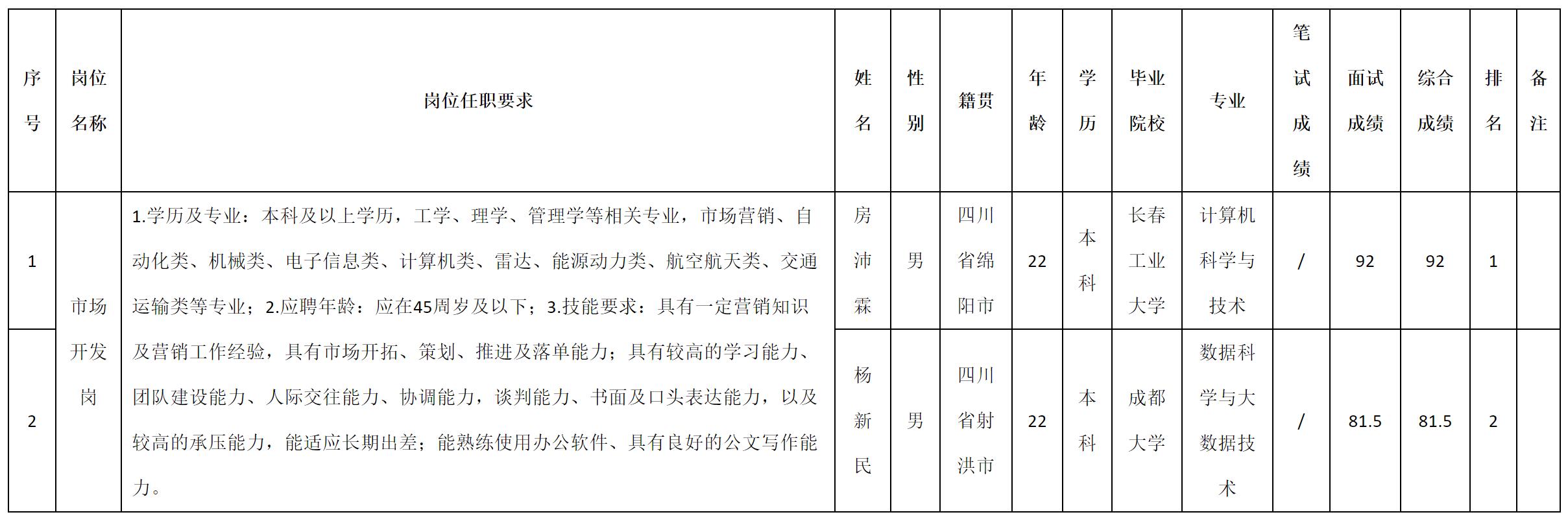 根據(jù)四川九洲永昌檢測技術(shù)服務(wù)有限責(zé)任公司發(fā)布的招聘公告及招聘相關(guān)規(guī)定,現(xiàn)將測試成績予以公示。