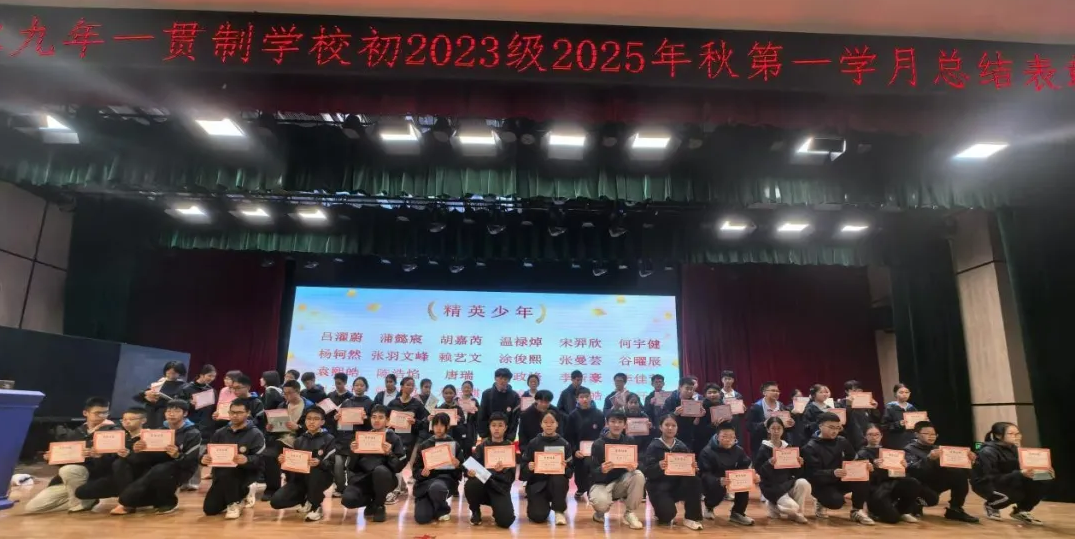為了表彰先進(jìn),樹立榜樣,進(jìn)一步激發(fā)全體初三學(xué)子的拼搏熱情,近日,綿陽城北七中初三年級全體師生齊聚一堂,隆重舉行了以“奮楫篤行,榜樣領(lǐng)航”為主題的2025年秋第一學(xué)月表彰大會活動。本次大會不僅是一次對過往成績的肯定,更是一次面向未來的集結(jié)與誓師!