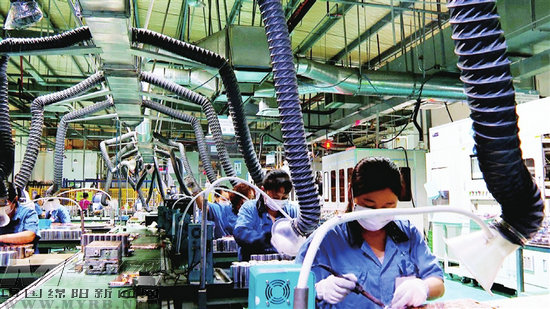 走進(jìn)四川省科學(xué)城久信科技有限公司生產(chǎn)車間,機(jī)器運轉(zhuǎn)不停,操作員正全神貫注操作機(jī)器加班加點進(jìn)行產(chǎn)品生產(chǎn)。