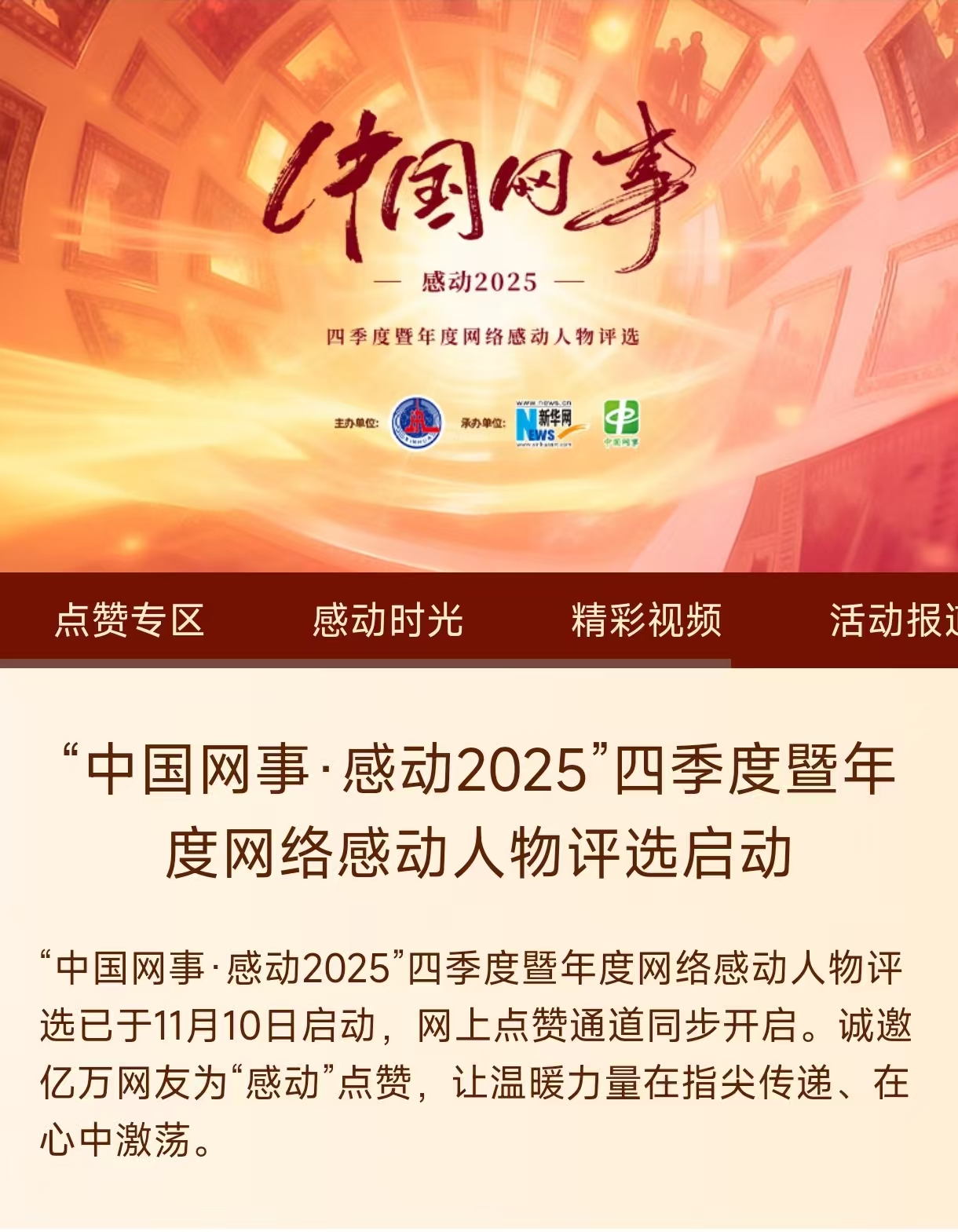 本次評選將經(jīng)過提名、審核、展示、點贊、專家評審等環(huán)節(jié),最終通過專家投票和網(wǎng)民點贊加權(quán)的方式,從60位(組)候選人中產(chǎn)生出“2025年中國網(wǎng)事十大感動人物”。