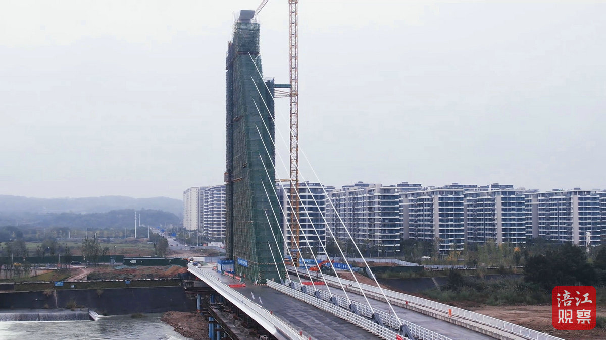 “如今項目進度已達95%,預計年底前通車。”調元大橋項目建設負責人王陽表示,這個“云鶴”的設計不只是為了好看,它就像橋塔的“單臂”挑起整個主跨,姿態(tài)輕盈,但內部需要極強的結構力量來平衡。這種無背索設計對塔柱的傾斜角度、基礎承載以及拉索的張拉力要求都非常高,是力學與美學的完美融合。