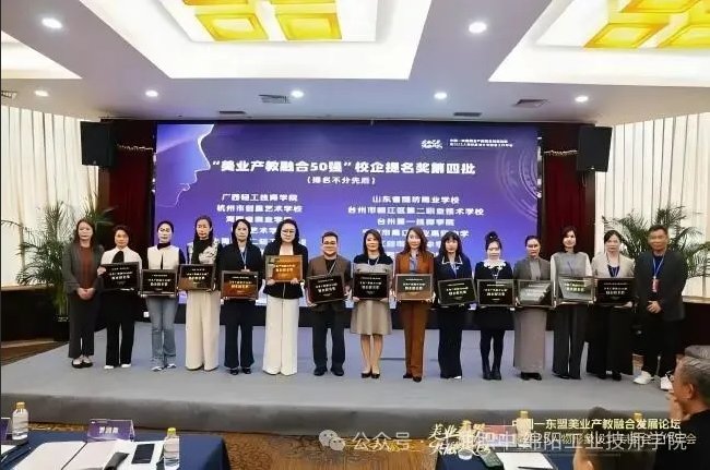 2025年10月30日至11月2日,教育部職業(yè)院校藝術(shù)設(shè)計(jì)類專業(yè)教學(xué)指導(dǎo)委員會(huì)人物形象設(shè)計(jì)專委會(huì)工作年會(huì)在廣西南寧隆重舉行。江油市職業(yè)中學(xué)校在會(huì)上喜獲"美業(yè)產(chǎn)教融合50強(qiáng)"校企提名獎(jiǎng),這是對(duì)該校在專業(yè)建設(shè)和產(chǎn)教融合方面取得成果的高度認(rèn)可。