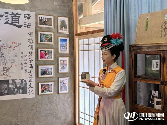 喇建瑛展示摩梭非遺茶 樂(lè)怡稼 攝