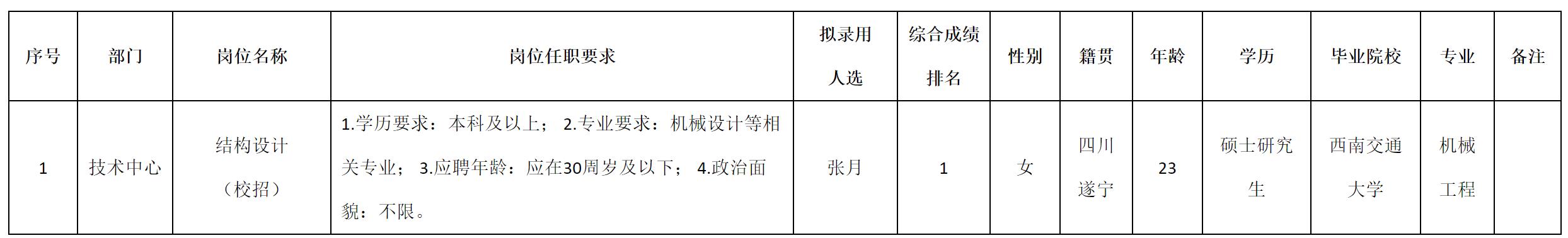 根據(jù)四川九州電子科技股份有限公司發(fā)布的招聘公告及招聘相關(guān)規(guī)定,經(jīng)測(cè)試、考察、體檢等程序,擬錄用張?jiān)峦镜剿拇ň胖蓦娮涌萍脊煞萦邢薰竟ぷ?,現(xiàn)予以公示,具體情況如下: