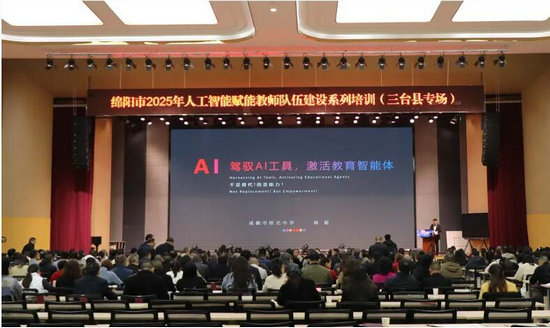 綿陽新聞網(wǎng)訊 為了深入貫徹國家“推進教育數(shù)字化”的戰(zhàn)略部署,11月6日至7日,綿陽市人工智能賦能教師隊伍建設(shè)培訓(三臺縣專場)在三臺博強外國語學校學術(shù)交流廳成功舉行。市、縣相關(guān)領(lǐng)導及全縣校園長、人工智能專家、種子教師400余人參加。