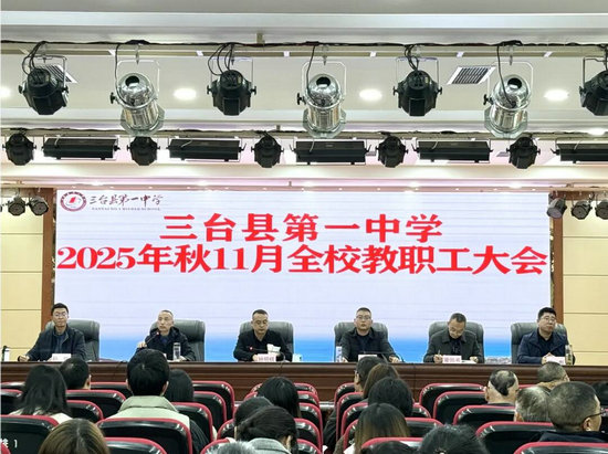 綿陽(yáng)新聞網(wǎng)訊 11月10日,三臺(tái)一中在綜合樓多功能廳召開(kāi)了以“學(xué)思踐悟擔(dān)使命 聚力前行譜新篇”為主題的2025年11月全校教職工大會(huì)。會(huì)議全面梳理半期前各項(xiàng)工作,系統(tǒng)部署半期后重點(diǎn)任務(wù)。全體教職工參加會(huì)議。