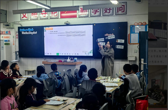 活動伊始,五里路小學顏聰老師在仙鶴小學執(zhí)教《Our animal friends》part B研討課。課堂上,顏老師充分調動學生積極性,學生熱情高漲、踴躍舉手,課堂互動頻繁,氛圍熱烈,高效達成單元教學目標。