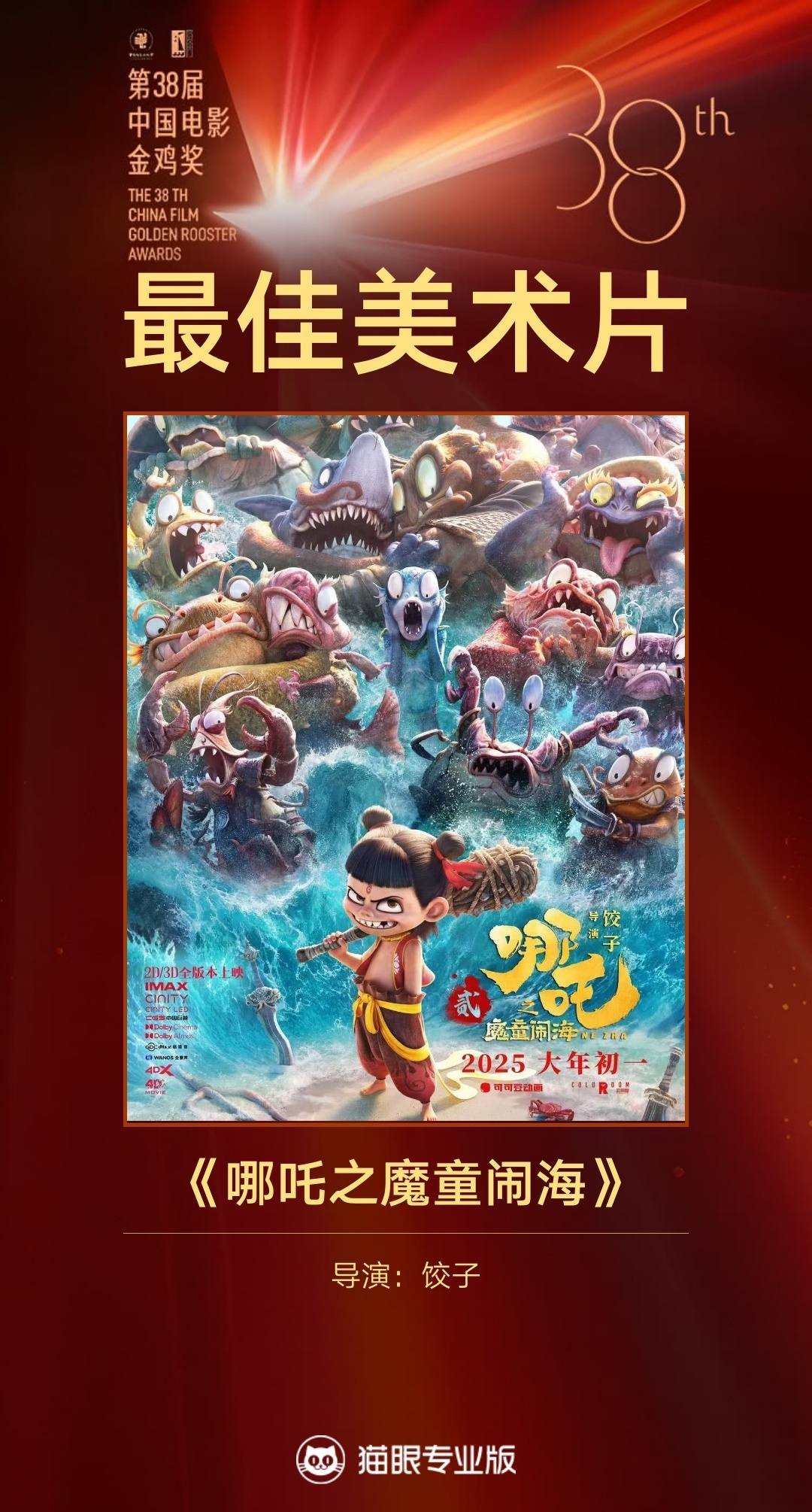 與此同時(shí),由成都可可豆動(dòng)畫(huà)影視有限公司制作出品的《哪吒之魔童鬧?!?同樣不負(fù)眾望,榮獲最佳美術(shù)片獎(jiǎng)。這部續(xù)作影片延續(xù)了前作的輝煌,總票房突破159億元,躋身全球影史票房榜前5。